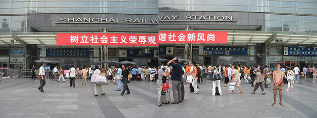 The artists Deng Ye Ming and Yu Ji went to the Shanghai Railway Station, a site where more than 20 cell phones are stolen every day.